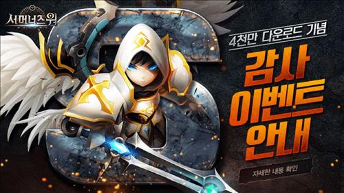 컴투스는 '서머너즈 워'의 4천만 다운로드 돌파를 기념해 이날부터 8월 9일까지 누적 출석일에 따라 다양한 아이템을 주는 이벤트를 진행한다.
