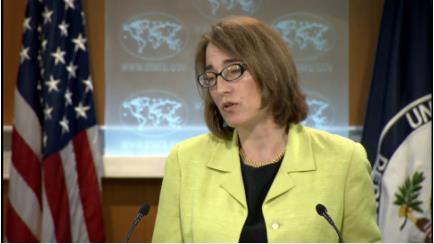 | △ 세라 시월 미국 국무부 안전·민주주의·인권담당 차관이 27일(현지시간) 미 국무부에서 연례 인신매매 실태 보고서를 발표하고 있다. |