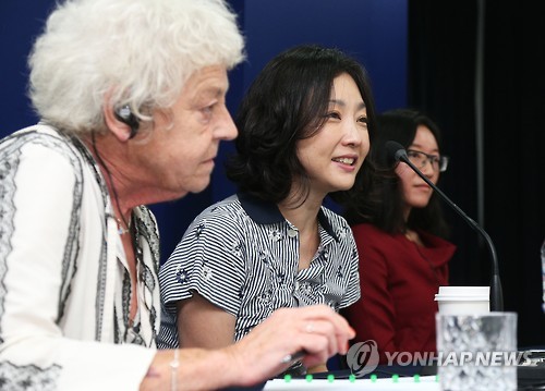 | △ '국립아시아문화전당 예술극장 프로그램 발표' (서울=연합뉴스) 홍기원 기자 = 28일 오전 서울 중구 태평로1가 한국프레스센터에서 열린 '국립아시아문화전당 예술극장 2015~2016 시즌 프로그램 발표'에서 김성희 예술감독(가운데)이 인사말을 하고 있다. |