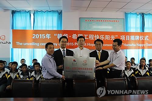 (서울=연합뉴스) 옥철 기자 = 한화큐셀(대표이사 남성우)과 한화차이나가 중국청소년발전기금회와 손잡고 중국 빈곤지역 학교에 태양광 발전설비를 지원했다.