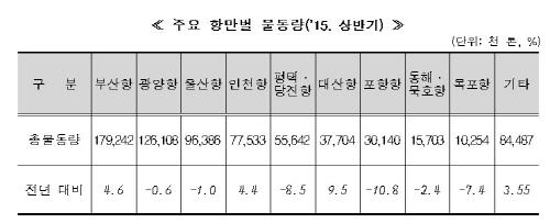 상반기 항만물동량 7억t…작년보다 0.8% 증가