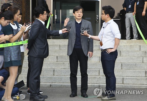 | △ 작년 6·4 지방선거 당시 지상파 3사의 출구조사 결과를 사전에 입수해 무단으로 사용한 혐의로 손석희 JTBC 사장이 기소 의견으로 검찰에 송치됐다. 사진은 지난 6월 서울 서대문구 서울지방경찰청 국제범죄수사대에서 조사를 마친 뒤 취재진의 질문에 답하고 있는 손석희 JTBC 사장. (연합뉴스 자료사진) |