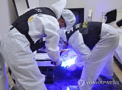 | △ 과학수사 달인을 찾아라 (전주=연합뉴스) 임채두 기자 = '과학수사 달인 선발대회'에 참가한 한 팀이 29일 전북 전주시 완산구 전북지방경찰청 과학수사 현장실습관에서 지문을 채취하고 있다. 2015.7.29 doo@yna.co.kr |