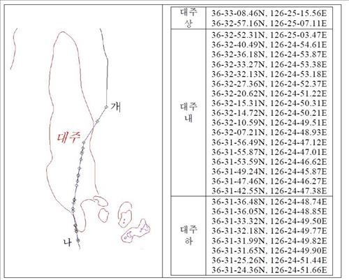 그러면서 상펄어장(지도상 대주로 표기) 바깥 바다 위에 두 지점을 찍은 뒤 이를 기준으로 오른쪽은 홍성군, 왼쪽은 태안군 관할이라고 결정했다.