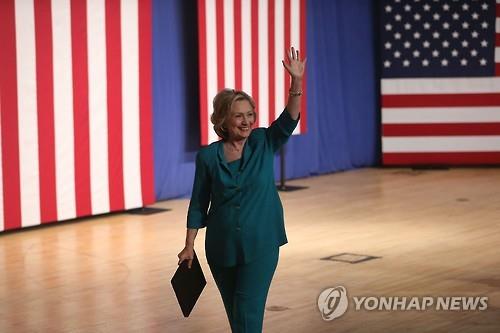 △ 플로리다 국제대학교에서 연설한 뒤 청중들에게 손을 흔드는 힐러리 클린턴 전 미국 국무장관