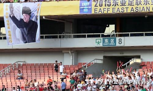<동아시안컵> 김정은 대형 현수막 걸렸다 철거돼