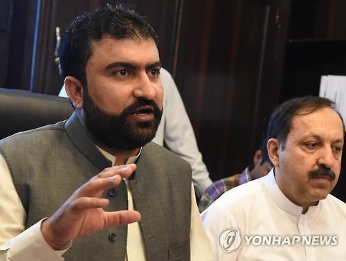 △ 파키스탄 발루치스탄주의 내무장관인 사르프라즈 부그티(왼쪽)가 2일(현지시간) 보안군이 국제 테러조직 알카에다의 고위 지휘관 우마르 라티프를 사살했다고 발표하고 있다. 2015.8.3 (AFP=연합뉴스)