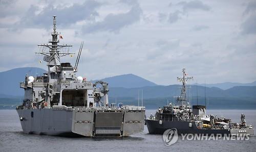 | △ 일본 해상자위대가 지난달 22일 미국 해군과 합동으로 기뢰 제거 훈련을 실시하는 장면.(교도.연합뉴스.자료사진) |
