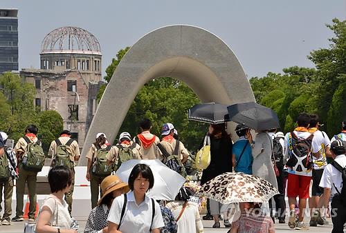 | △ 원폭 희생자들을 위한 묵념 (히로시마 AFP=연합뉴스) 5일(현지시간) 일본 히로시마 평화기념공원을 찾은 방문객들이 원자폭탄 희생자들을 위해 기도하고 있다. 6일로 일본 히로시마원폭 투하 70주년이 된다. lkm@yna.co.kr (끝) |