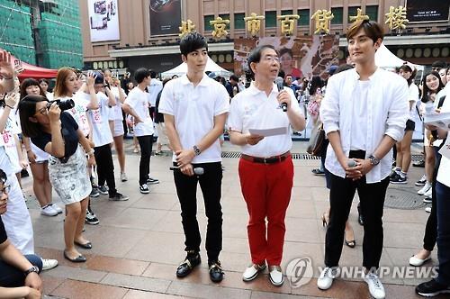 방중 마지막 날인 이날 박 시장은 베이징 최대 번화가인 왕푸징 노천카페에서 강타, 천쉐둥, 100명의 K-POP 커버댄스단과 '서울관광, 지금 이때다'라고 쓴 티셔츠를 입고 플래시몹을 선보였다.