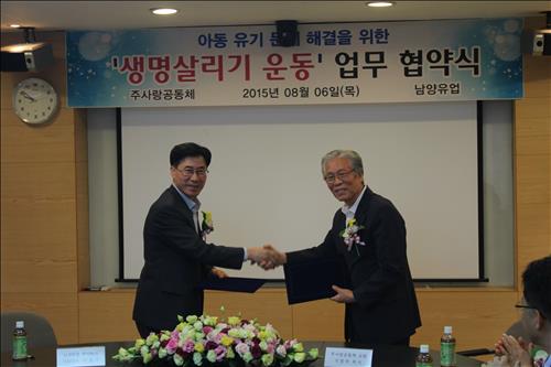 (서울=연합뉴스) 인교준 기자 = 남양유업은 주사랑공동체와 '아기 생명 살리기 운동' 추진 협약을 맺었다고 6일 밝혔다.
