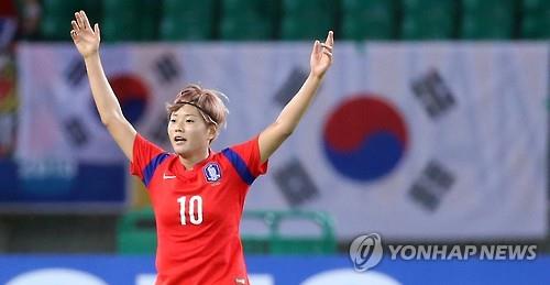 △ 일본전에서 역전골을 넣고 환호하는 전가을.<<연합뉴스 자료사진>>