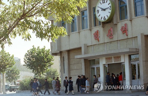 △ 북한, 광복절부터 표준시 변경 (서울=연합뉴스) 북한은 7일 "일본 제국주의자들이 우리나라 표준시를 빼앗았다"며 광복 70주년을 맞는 오는 15일부터 표준시간을 기존에 사용하던 동경시보다 30분 늦춰 사용한다고 발표했다. 사진은 평양시내의 혁신 역사. << 연합뉴스 DB >>