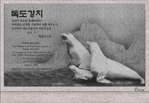 해양수산부는 광복 70주년을 맞아 독도 동도 선착장 서쪽 난간 안내판 옆 벽면에 '독도 강치 기원 벽화'를 설치했다고 7일 밝혔다.