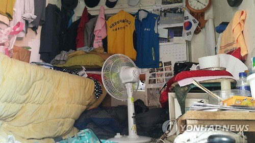 | △ 창문없는 쪽방촌 (서울=연합뉴스) 이보배 기자 = 사망자까지 여러 명 낳은 올여름 불볕더위가 막바지 기승을 부리면서 서민들의 고통이 극심하다. 7일 서울 용산구 동자동 쪽방촌에 사는 김모(76)씨의 방 안에 창문이 없어 환기조차 잘 되지 않는다. 방 안이 한낮의 열기를 그대로 머금고 있는 탓에 김씨는 안에서 쉬지 못한다. bobae@yna.co.kr |
