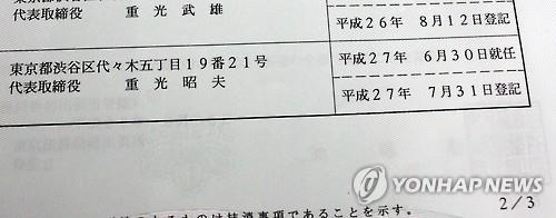 △ 주식회사 L투자회사의 등기부등본 대표이사 란에 신동빈 회장의 일본 이름인 '시게미쓰 아키오'(重光昭夫)가 표기돼 있다.