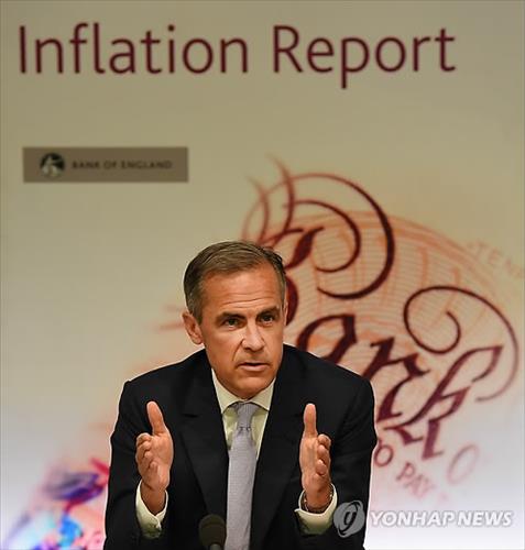| △ (런던 EPA=연합뉴스) 마크 카니 영란은행(BOE) 총재가 6일(현지시간) 기준금리를 동결한 후 연 기자회견에서 말하고 있다. |