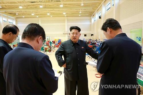 △ 농기계 전시장에서 관계자들에게 지시하는 김정은 북한 국방위원회 제1위원장