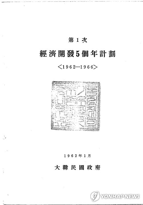 △ 제1차 경제개발 5개년 계획 (서울=연합뉴스) 국가기록원이 10일 공개한 '제1차 경제개발 5개년 계획(1962~1966)'. 행정자치부 국가기록원은 광복 70년을 맞아 1950년∼1990년대 경제개발계획을 담은 '기록으로 보는 경제개발 5개년 계획' 자료를 오는 11일부터 국가기록원 누리집에서 공개한다고 10일 밝혔다. (국가기록원 제공)