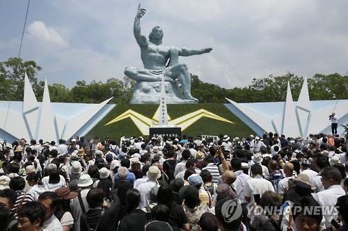 | △ 나가사키 평화공원에서 9일 열린 원폭희생자 위령식(EPA.연합뉴스) |