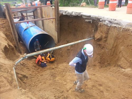당시 청주시 흥덕구 휴암동 일원에서 2천200㎜의 초대형 상수도관을 묻는 작업에 투입된 2명의 근로자가 갑자기 쏟아져 내린 토사에 매몰됐고, 이 중 1명이 숨졌다.