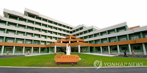△ 북한 평양 문수지구의 옥류아동병원 전경. (평양 조선중앙통신=연합뉴스 자료사진)