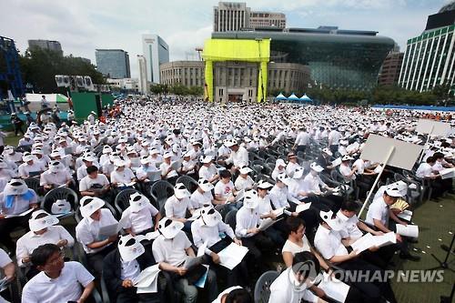 (서울=연합뉴스) 김희선 기자 = 광복 70주년을 맞아 개신교인들이 9일 오후 서울 시청광장과 광화문 세종로 일대에 모여 평화통일을 기원하는 대규모 기도회를 열었다.
