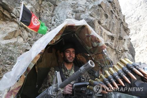 | △ 9일 아프간 수도 카불의 도로 옆 검문소에서 아프간군인이 경계 근무를 서고 있다.(EPA=연합뉴스) |