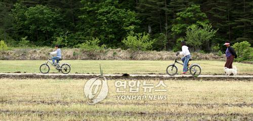 | △ 1960년 노곡면에는 12살 이하 어린이 2천54명을 포함해 5천387명이 살았지만 2010년에는 615명만 남았고, 14살 이하는 17명에 지나지 않는 마을로 전락했다. 강원 삼척시 노곡면의 한 들판 (연합뉴스 자료사진) |