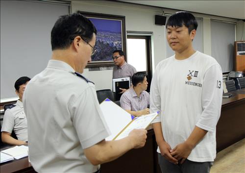 인천 계양경찰서, 20대 남성에게 감사패·포상금 지급