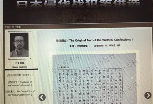 11일 중국중앙(CC)TV에 따르면 중국 국가당안국(기록물보관소)는 이날부터 일제 전범들의 자백서를 하루 한 편씩 모두 31편을 공개할 예정이라고 밝혔다.