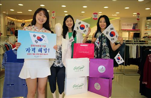 (서울=연합뉴스) 오예진 기자 = 패션그룹 형지는 광복 70주년을 기념해 13∼15일 여성복 크로커다일 레이디, 샤트렌, 올리비아하슬러의 일부 상품을 70% 할인 판매한다고 12일 밝혔다.