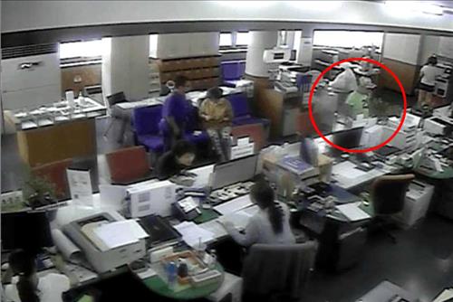 | △ 성남시 모 주민센터에서 모금함을 훔치는 선씨 모습. 2015.8.12 <<성남수정경찰서>> |