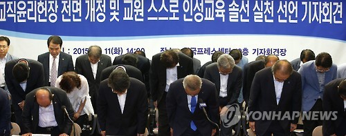 | △ 고개숙여 사과하는 교원단체 대표들(연합뉴스 자료사진) |