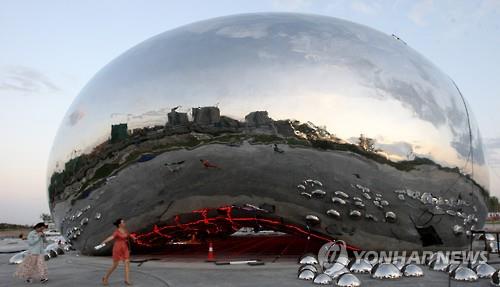 (시카고=연합뉴스) 김 현 통신원 = 중국 관광도시에 미국 시카고의 유명 조형물 '구름문'(Cloud Gate·일명 The Bean)과 매우 흡사한 조각품이 들어서 '베끼기' 의혹이 일고 있다.