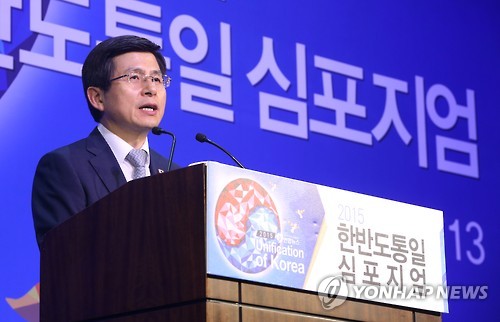 (서울=연합뉴스) 특별취재팀 = 황교안 국무총리는 13일 서울 웨스틴 조선호텔에서 국가기간뉴스통신사인 연합뉴스와 대통령 직속 통일준비위원회가 공동 주최한 '2015 한반도통일 심포지엄'에서 축사를 했다.