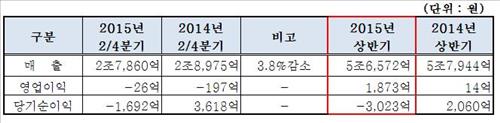 상반기 영업이익 1천873억원ㆍ당기순손실 3천23억원