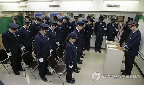 | △ 도쿄 지하철 근무자, 옴진리교 테러 20주년 추모 묵념(EPA=연합뉴스 자료사진) |