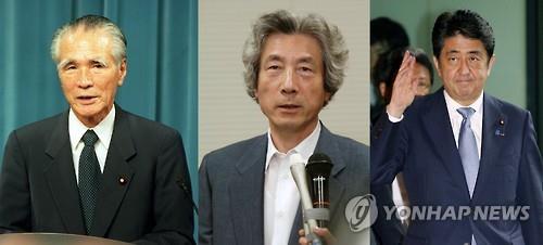 △ 왼쪽부터 1995년 8월 15일 무라야마 도미이치(村山富市) 당시 총리가 도쿄 총리관저에서 전후 50년 담화(무라야마 담화)를 발표하는 모습, 2005년 8월 15일 고이즈미 준이치로(小泉純一郞) 당시 일본 총리가 도쿄 자민당사에서 기자들의 질문에 답하는 모습, 아베 신조 일본 총리가 14일 총리 관저에 들어가는 모습.(교도=연합뉴스)