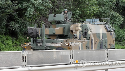 △ 한미 군 당국이 을지프리덤가디언(UFG) 연습을 시작한 지난해 8월 18일 경기도 파주시 접경지역에서 궤도차량이 이동하고 있다. (연합뉴스 자료사진)