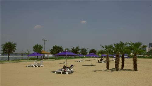 시는 1천여 t이 넘는 모래를 날라 5천㎡ 규모의 넓은 백사장을 조성했다. 파라솔, 선베드, 관엽 화분, 샤워장과 탈의실도 마련했다.