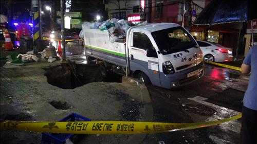 서울 종로구에 지름 3m 싱크홀…청소차 바퀴 빠져