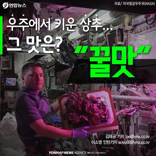 (서울=연합뉴스) 김태균 기자·이소영 인턴기자 = 미국항공우주국(NASA)이 최근 '우주에서 키운' 상추의 시식 장면을 인터넷으로 지구에 생중계했습니다. 그 맛은 어떨까요?