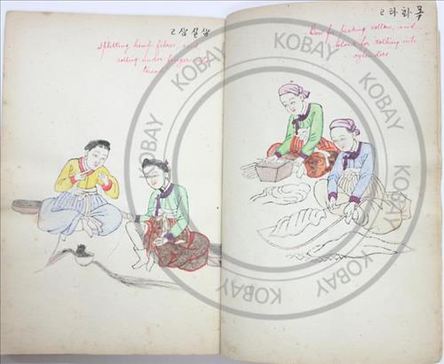 김준근은 자신이 그린 그림에 직접 한글 설명을 붙였고, 화첩을 소장했던 외국인이 영어 번역본을 더했다.