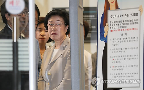 | △ 불법 정치자금을 받은 혐의를 받는 한명숙 새정치민주연합 의원이 지난 2013년 16일 오후 서초동 서울고법에서 열린 항소심에서 징역 2년을 선고받은 뒤 법정을 나서고 있다. (연합뉴스 자료사진) |