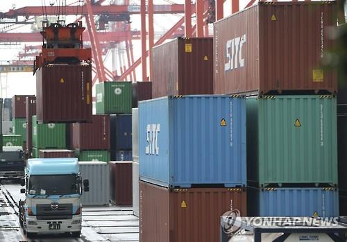 | △ 17일 일본 도쿄의 항구에서 컨테이너를 트럭에 실고 있는 모습. |