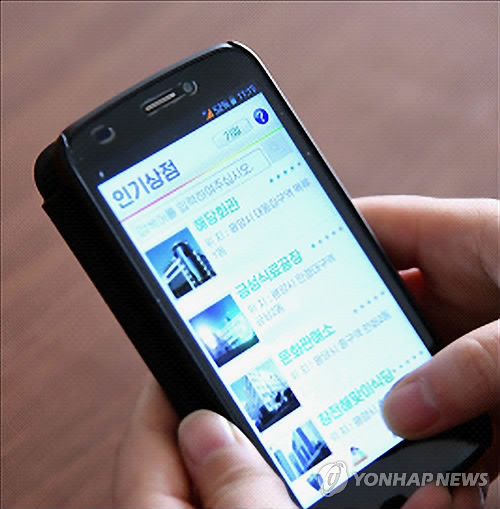 | △ 휴대전화로 쇼핑하는 북한 주민 (서울=연합뉴스) 재일본조선인총연합회 기관지 조선신보는 2일 북한 주민이 휴대전화로 온라인 쇼핑을 하는 모습을 담은 사진을 공개했다. 앞서 조선중앙통신은 1일 '전자결제카드'로 운영되는 전자상업 봉사체계 '옥류'가 운영되고 있다며 "인민들의 편리성을 도모하고 근로자들의 생산열의를 추동하자는데 그 운영 목적이 있다"고 밝혔다. 2015.4.3 nkphoto@yna.co.kr |
