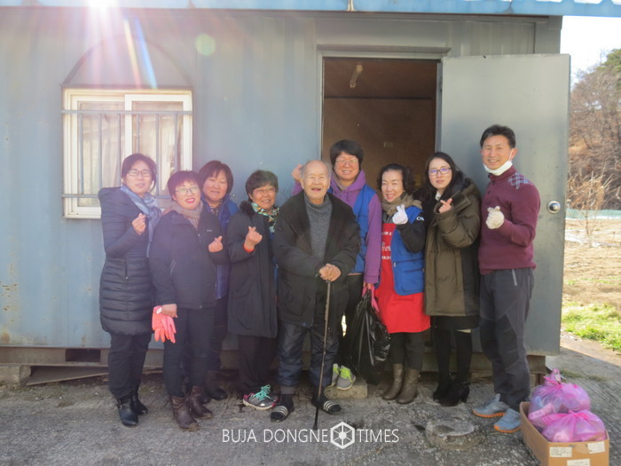[부자동네타임즈 김민석기자]간성읍사무소에서는 1월 11일, 청소봉사 나눔행사로 직원들과 고성군여성농업인연합회 회원 10명이 연계하여 간성읍 독거노인 집에 쌓인 쓰레기수거 및 청소를 실시함.