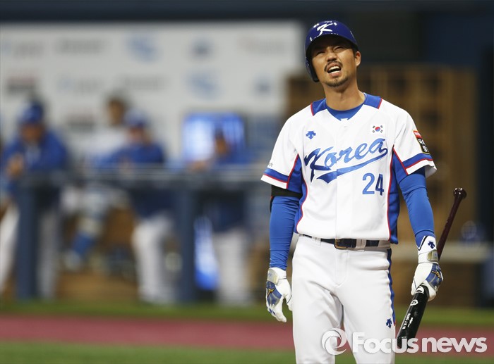 | △ 지난 4일 오후 서울 구로구 고척스카이돔에서 열린 2015 서울 슈퍼시리즈 대한민국과 쿠바의 경기 8회말 1사 상황에서 대한민국 대표 오재원이 스트라이크가 되자 아쉬워하고 있다. <사진제공=포커스뉴스> |