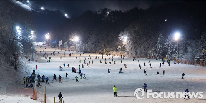 (평창=포커스뉴스) 27일 오후 강원 평창군 휘닉스 파크 스키장을 찾은 스키어, 스노보더들이 슬로프를 내려오고 있다.